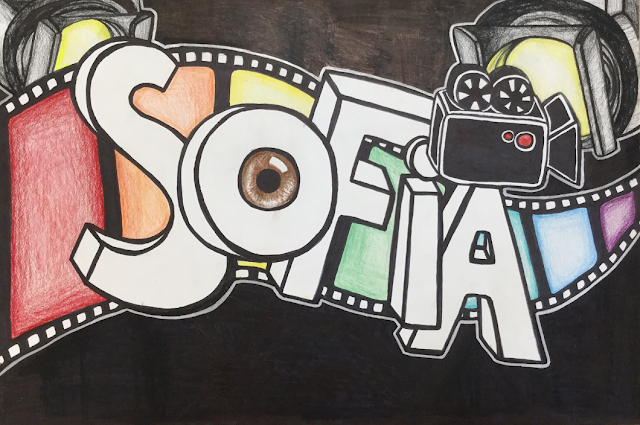 2. A draft picture or pencil drawing of the 3D name portfolio including background details